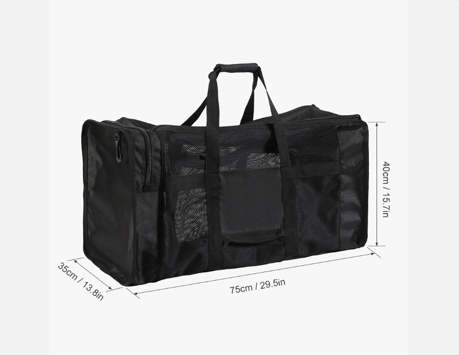 75 * 35 * 40 cm (29.5 * 13.8 * 15.7 in) in size Weight: about 0.9 kg/2 lbs List of Packages: 1 * Duffle Bag