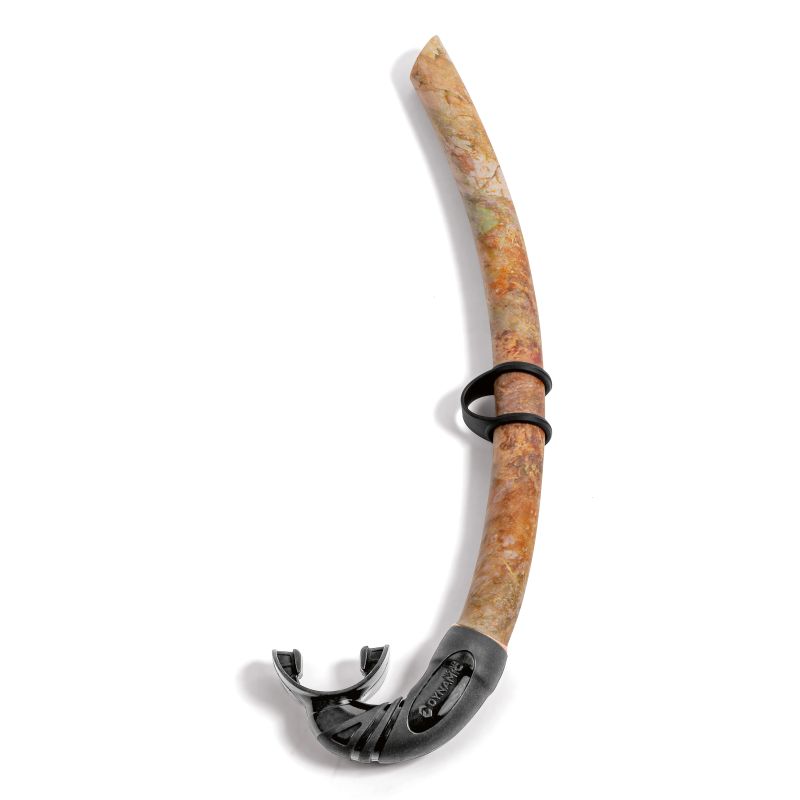 Our apnoa snorkel features the classic low-profile J-shape with pre-shaped tube and figure 8 snorkel mount. The mount can be conveniently adjusted in height. The mouthpiece is made of high-quality silicone and offers maximum comfort.