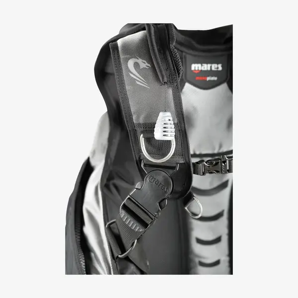 The fit is excellent and the performance is enhanced by the separation between the bag and straps. This permits a wider range of movement and greater stability of the bag itself, even when making adjustments during the dive. The bag is joined to the shoulder strap by a buckle that can slide on a strap, thus ensuring that there is no traction on the shoulders during inflation.