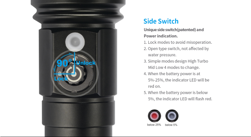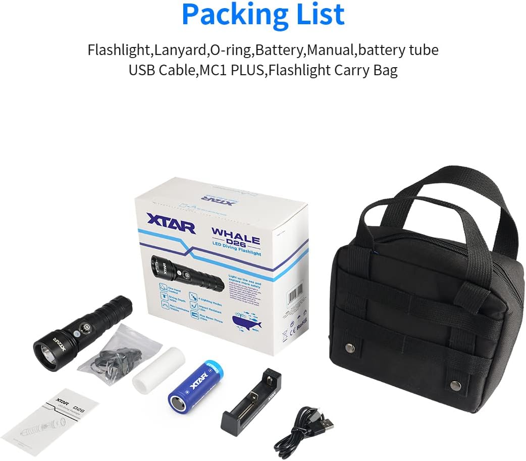 • 1100 lm is the maximum output. Two hours of running time. Streamlined Reflector Warm light, a revolutionary side switch, an anti-reflective coating on the ultra-clear tempered glass lens, an ergonomic design, and a more portable version of the “D06” classic tube.XTAR Whale D26 1100 Lumen Dive Light